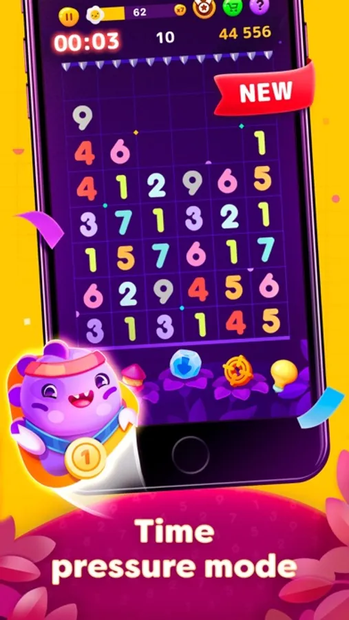 SPRINT. Mode for time-pressure lovers. You have a few minutes to clear all numbers above the highlighted rows, while new numbers keep falling down.