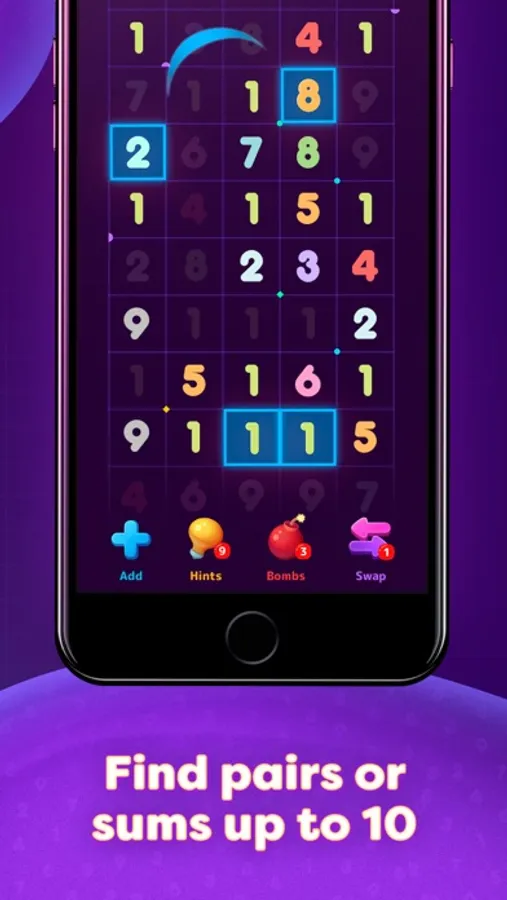 BOMBS. This useful booster helps you to get rid of extra numbers in one tap. Just move the red area to choose the target. As a result, you will blow up 9 numbers at once!