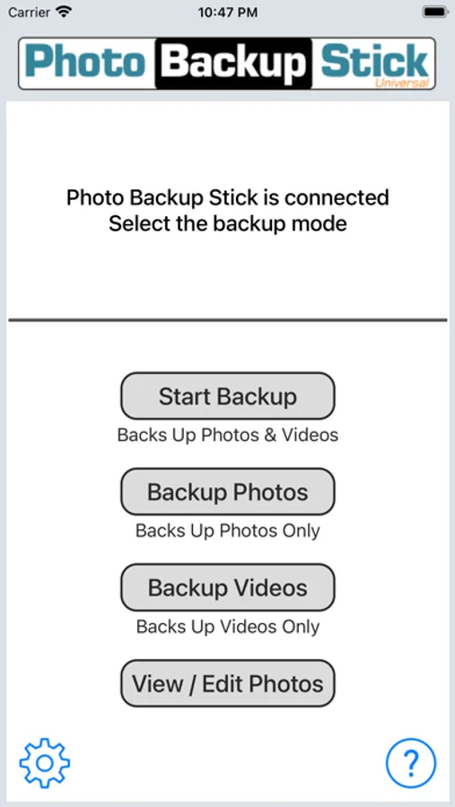 The Photo Backup Stick Universal is the ultimate picture and video backup and storage tool. Backup from iPhones, iPads and Mac all with one tool. The Photo Backup Stick Universal app works with the Photo Backup Stick Universal USB drive. The drive also contains special apps for backing up from Mac computers running Mac OS 10.12 or higher. Using the Photo Backup Stick Universal is simple. Plug the USB drive into your iOS device, install and open the app, and click the backup button. You have three options for backing up: Backup Photos and Videos, Backup Photos Only, or Backup Videos Only. Once backed up to the USB drive, you can plug it into a computer to view, edit, copy etc. The Photo Backup Stick Universal app will only backup photos and videos once. This means you can backup your device as often as you like without worrying about duplicates. Each photo and video will only be backed up once and only new photos and videos will be backed up with each time you do a backup.