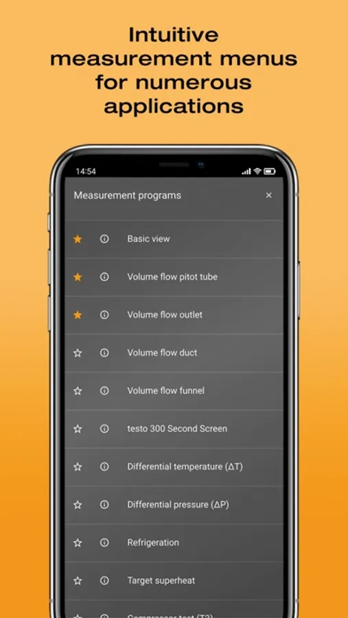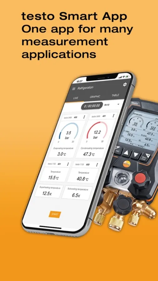 - All in one: The testo Smart App guides you easily and quickly through measurements on refrigeration, air conditioning and heating systems, air flow, and many more applications.
