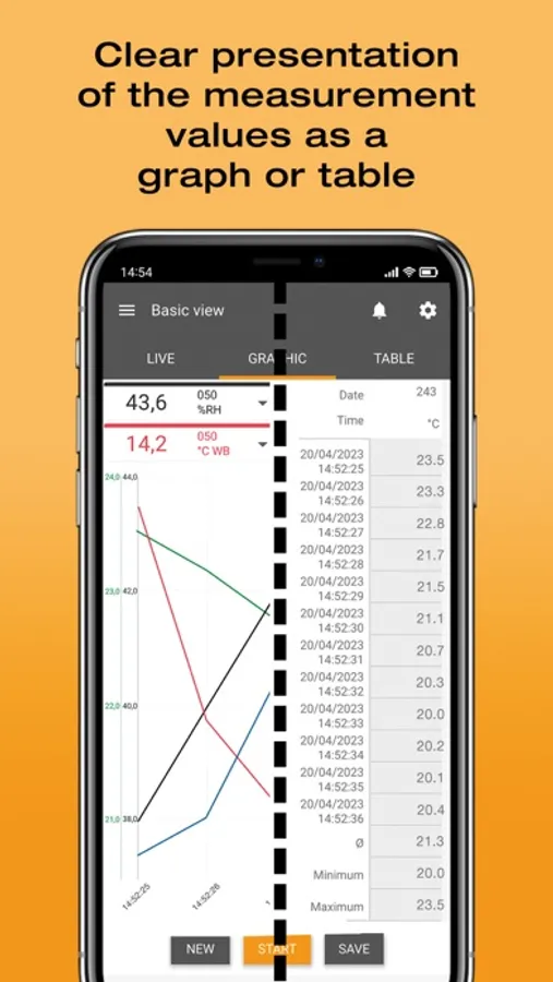 - Temperature and humidity: Automatic calculation of dew point and wet bulb temperature