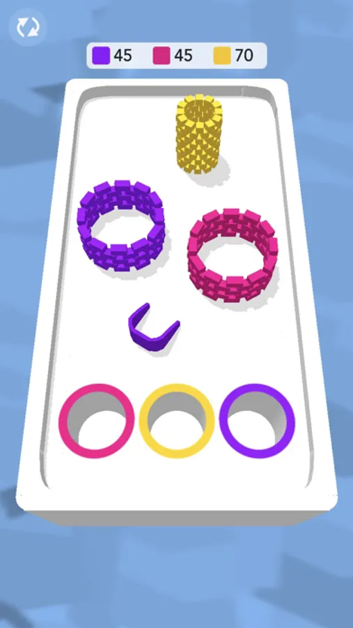 Take the horseshoe and sort the objects by color. Simply move your finger along the screen to move the horseshoe. You need to push the objects and put them into the matching holes.