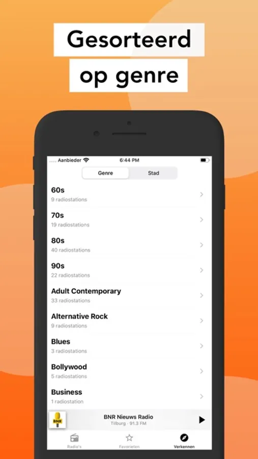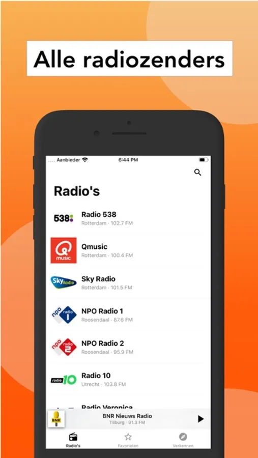 In our app, access all the Dutch radio stations and choose between sports, news, music or other radio stations. You can listen to everything for free, no matter where you are.