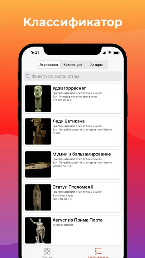 III. КЛАССИФИКАТОР по коллекциям, экспонатам и авторам