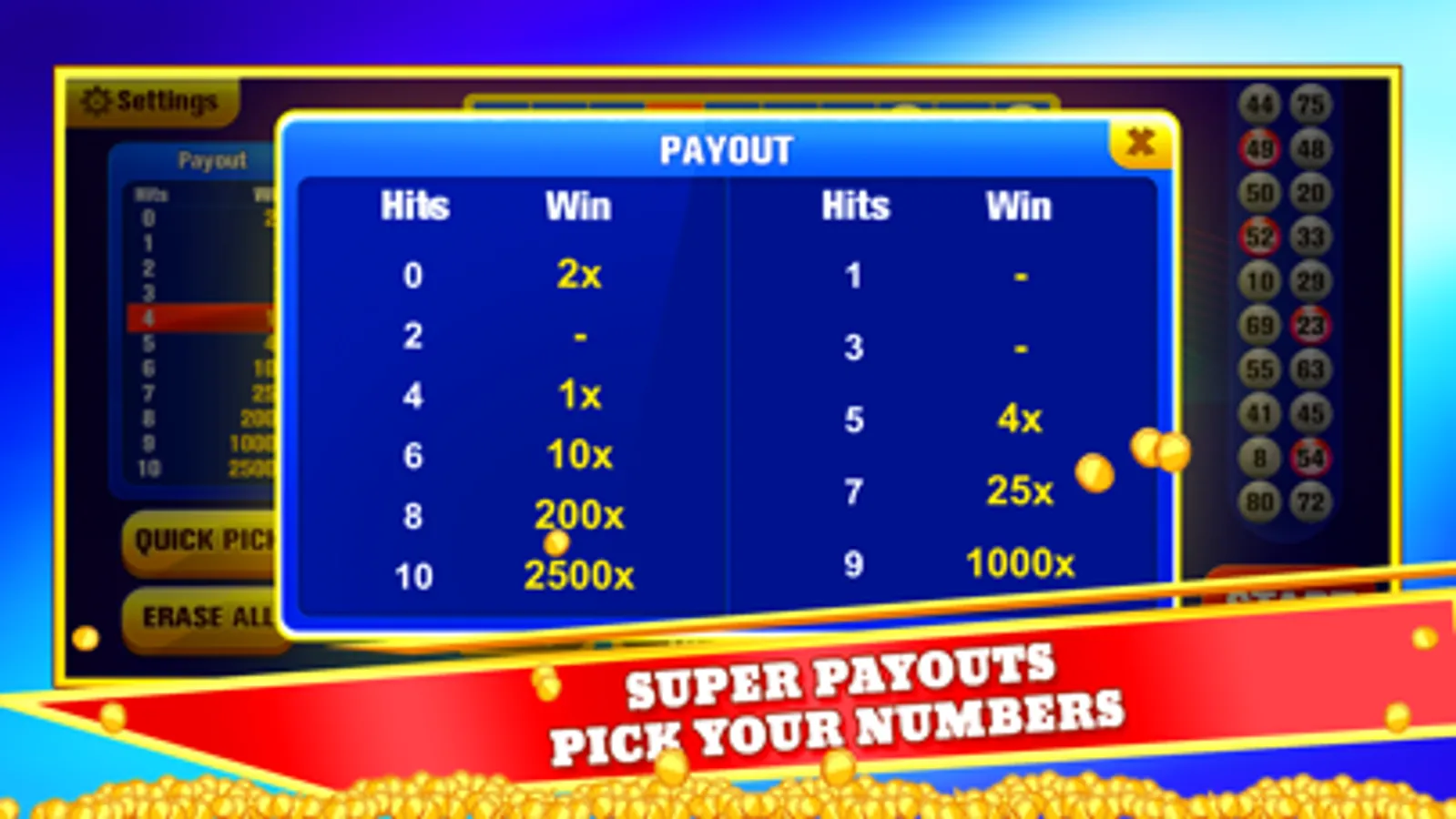 ● Win in a flash using the QUICK PICK feature for speedy payouts