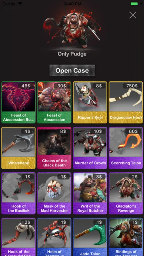 Open Dota 2 cases.