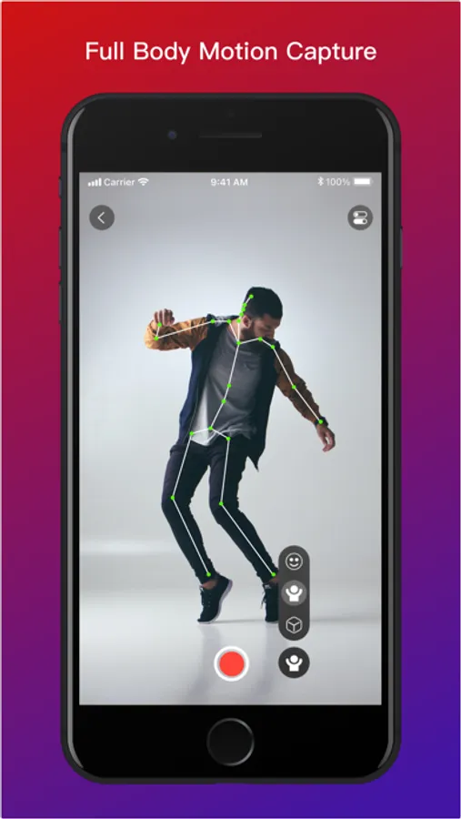 You can record entire body movements as well! When videos are recorded in the Moves by Maxon app with your iPhone or iPad camera, Apple ARKit analyzes the movements in realtime and creates an animated 3D "skeleton" that is superimposed on the video. This provides a preview and the ability evaluate the recording of your moves.