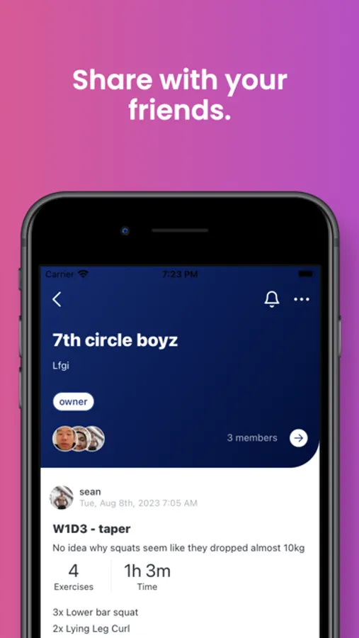 * Create workout groups with your friends
