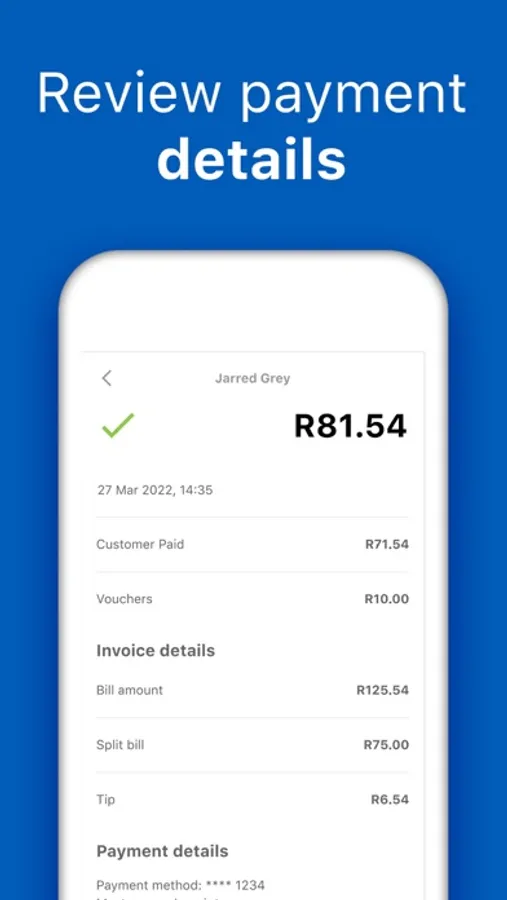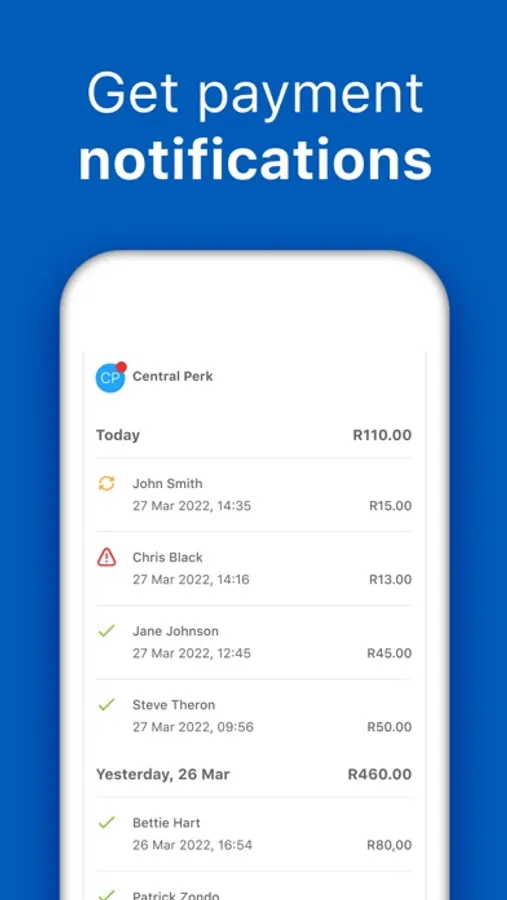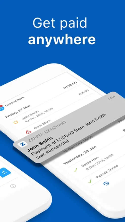 The Zapper Merchant app conveniently delivers Zapper payment confirmations in real time. Forget about scrolling through days and weeks of SMS confirmations to reconcile.