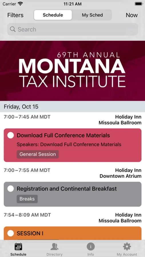 Conveniently browse the entire schedule for 69th Annual Montana Tax Institute. Get the key information of your event without ever having to crack open an event guide.