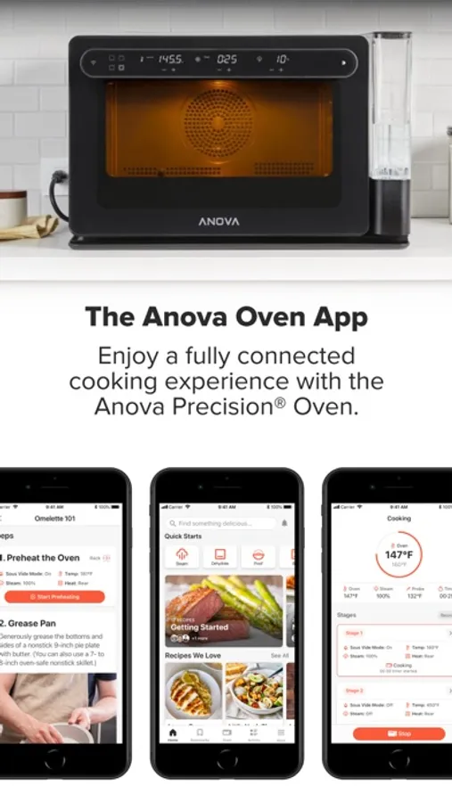 The Anova Precision® Oven is the first combi oven with pro-level features designed specifically for the home cook. Paired with the Anova Oven app, you’ll enjoy a fully connected cooking experience and the most advanced features of the Oven.