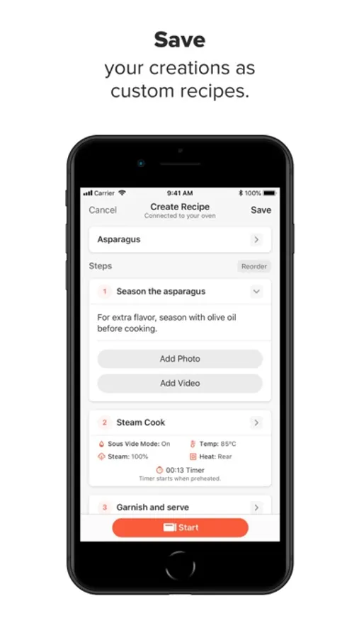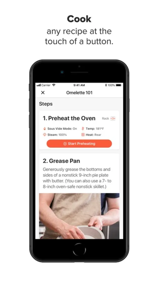 - Start cooking any recipe with a single tap. The cook settings are sent to your oven directly.