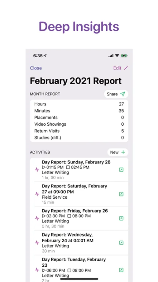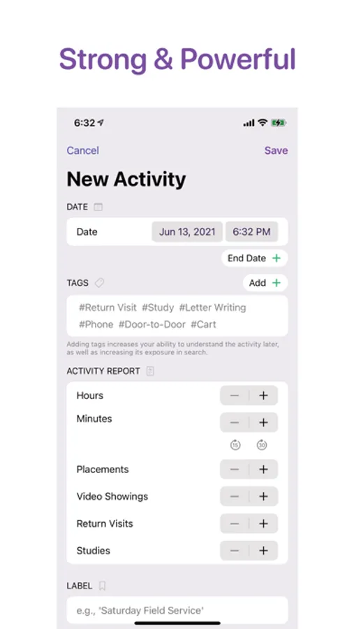 Many features are almost complete and will be released in the coming weeks. For now, enjoy being able to easily record your activity, manage your data, manage people you create, get real-time congregation updates and meeting information (requires platform sign-up), securely back up your data (*coming* requires platform sign-up), and more!