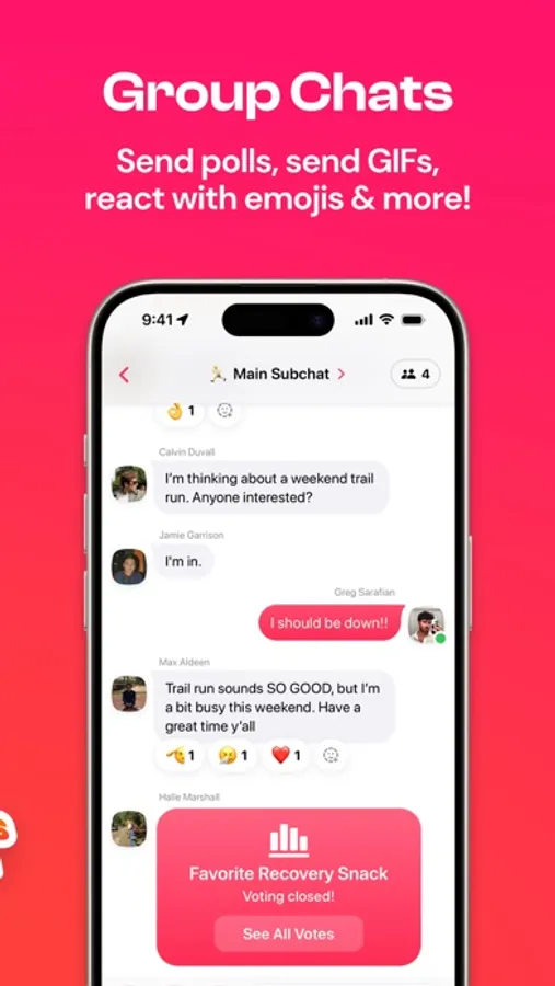 • Within your Dive Group, subchats are dedicated to topics where you talk with friends, plan the next hangout, and send polls, photos, videos, and GIFs.