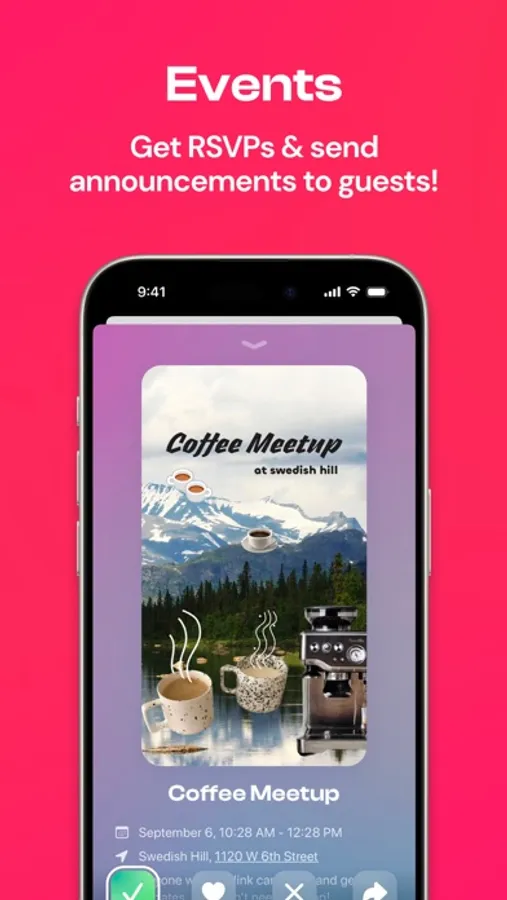 • Create an event with all the details and collect RSVPs from the people you invite.