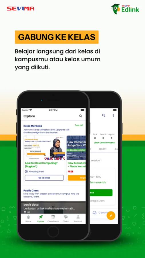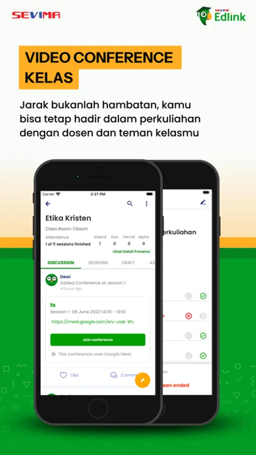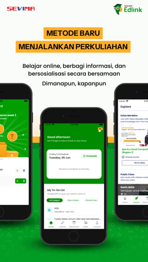 EdLink adalah aplikasi yang membantu mahasiswa dan dosen dalam kegiatan pembelajaran. Berbagi informasi, materi perkuliahan / pelajaran, dan memberikan tugas menjadi lebih mudah hanya lewat genggaman.