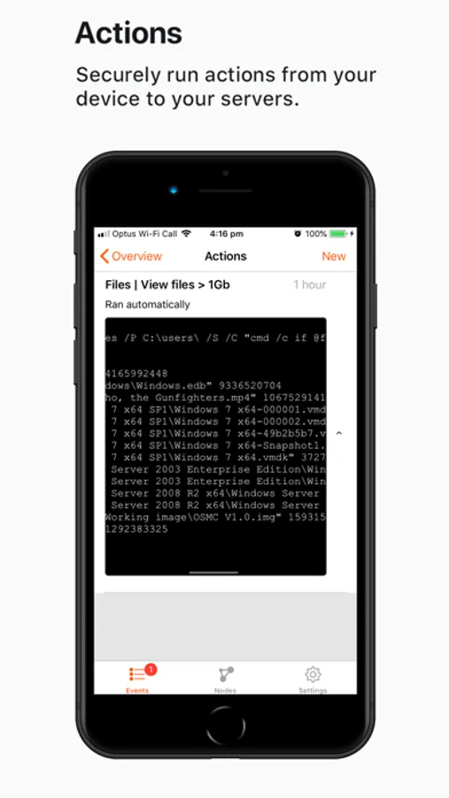 Open an event to see when it occurred, the application that was impacted and more. Read its full audit history and view the results of any command that has been automatically run. Write a comment to share your thoughts with others. Manually run a script or command from a node or event that can help you to diagnose what has caused the issue, or to resolve it completely.