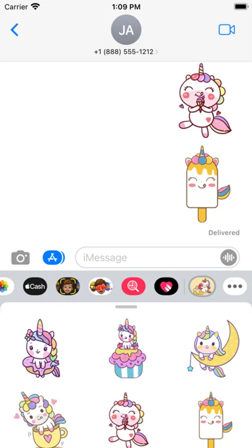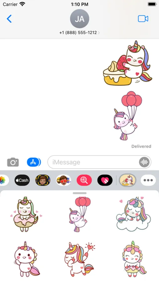 Get your colorful unicorn sticker on Appstore. Perfect for placing funny, naughty and beautiful emotions over your messages.