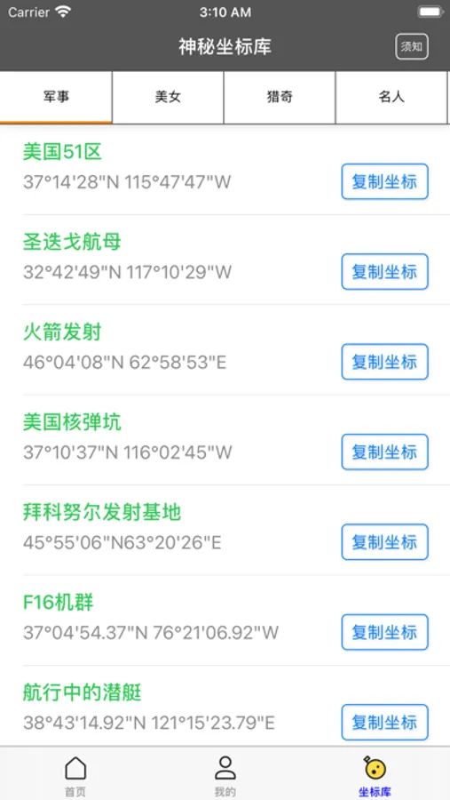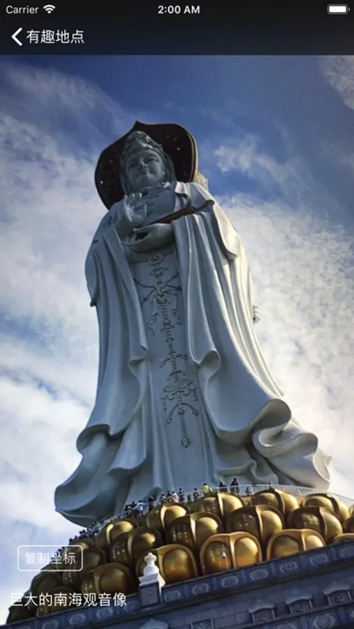 我们提供的有趣地点都带有坐标,用户可以复制这些坐标,这些坐标体系与百度地图、Google地图(谷歌地图)、搜狗地图等大多数地图通用.