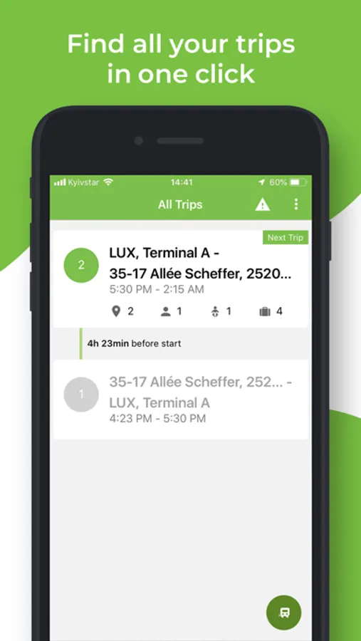 You can easily review information about your trip: number of stops with exact address, booking information and extra services, if any.