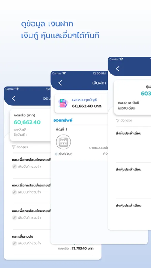 - ดูยอดเงิน รายการเคลื่อนไหวบัญชีเงินฝาก