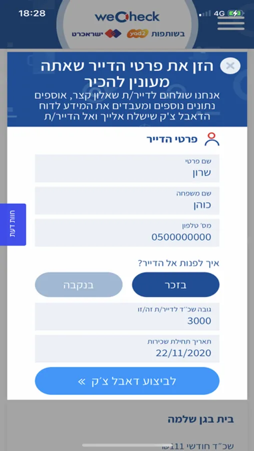 דאבל צ׳ק - פלטפורמה דיגיטאלית מהפכנית המאפשרת לדייר לספק לבעל הדירה את כל המידע הרלוונטי עליו לעסקת השכירות.
