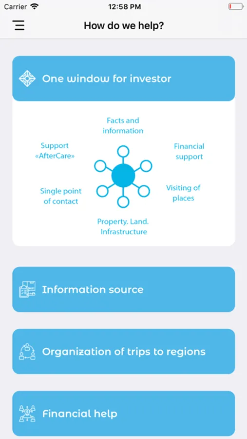 Через данное мобильное приложение можете ознакомиться с природой инвестирования в Казахстане, узнать о всех плюсах и минусах, прочитать всю необходимую информацию об инвестиционном фонде, посетить сайты каждого из городов, и конечно, обратиться за помощью к специалистам.