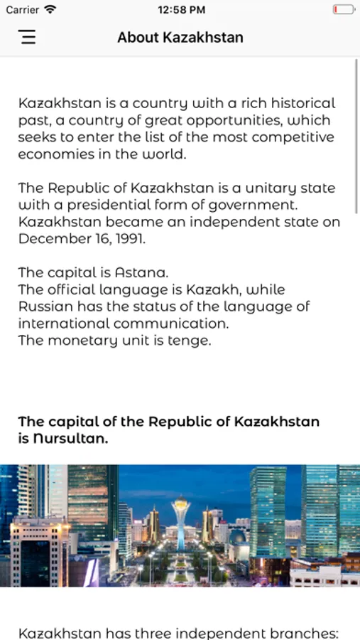Приложение адаптировано к трем языкам: русский, английский и казахский.
