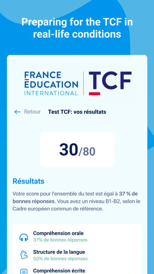 - Prepare for the TCF, the French Knowledge Test, with a series of practice exercises and a simulator in real conditions,