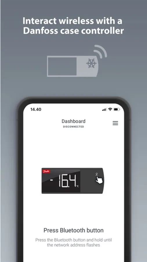 Make service easy with the free AK-CC55 Connect app. Via a Danfoss Bluetooth display you can connect to an AK-CC55 case controller and get a visual overview of the display functions. The app ensures smooth interaction with a Danfoss AK-CC55 case controller in a user-friendly design.