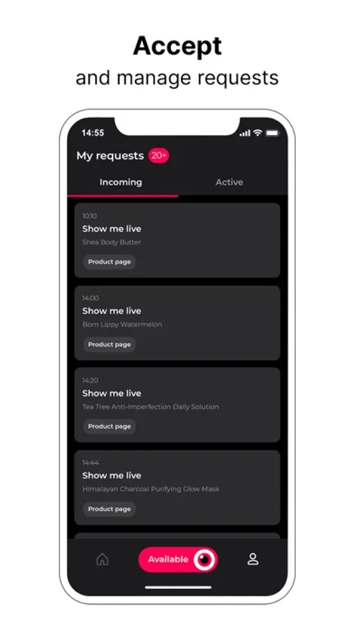eyezon is a business instrument that allows you to show your products to your online customers via on-demand live video. Through the eyezon app your sales reps will be able to accept and manage requests, go live, communicate with the customers and schedule convenient times for live product demonstrations.