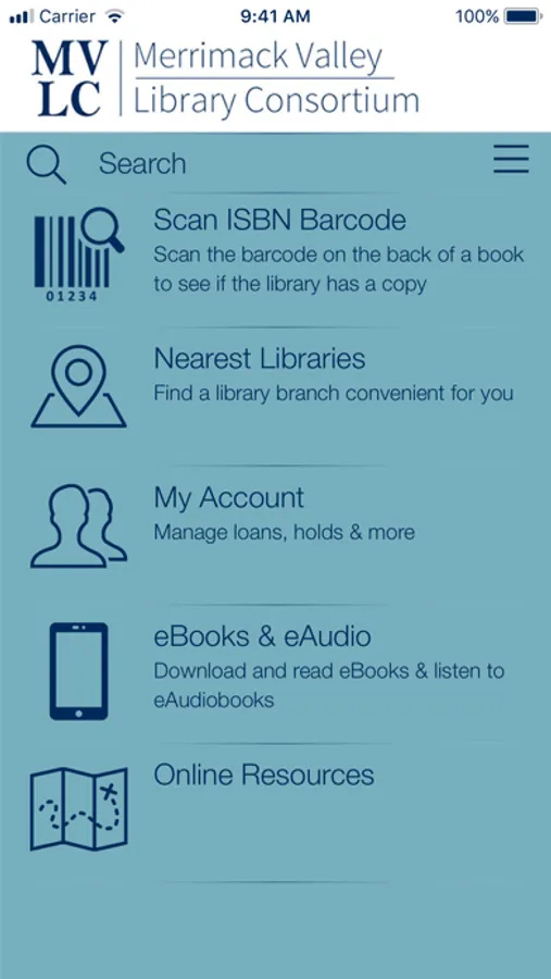 MVLC Mobile makes it quick and easy to access the Merrimack Valley Library Consortium on the go! Search the MVLC catalog, download items, manage your account, access your library’s electronic resources, and learn about library events with your iPhone, iPad or iPod Touch.