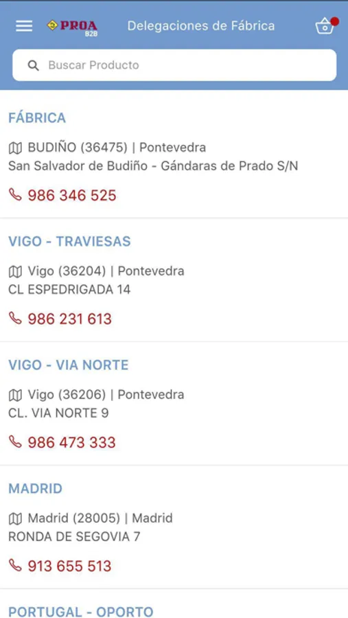 - Consulta las delegaciones de fábricas con sus datos de contacto.