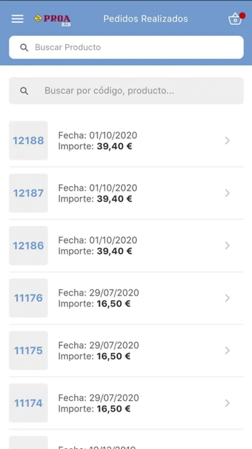 Accede a tu portal B2B de Pinturas Proa desde tu móvil y navega por sus secciones: