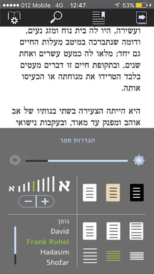 DatiBooks – ספרים דיגיטליים בעברית! בחנות DatiBooks תמצאו מגוון ענק של ספרים דיגיטליים בעברית של כל ההוצאות לאור ושל סופרים עצמאים - בקליק אחד בלבד! דאגנו שמגוון הספרים בחנות יורכב מספרים המותאמים לציבור הדתי, תוך שמירה על סינון תוכן בלתי הולם. אפליקציית הקריאה שלנו זמינה למכשירי אייפד ואייפון, ומאפשרת לכם לקחת את כל הספרים שלכם איתכם לכל מקום ובכל רגע. מעתה תוכלו אתם לקבוע את גודל הפונט, הרקע, רוחב השוליים ועוד, כדי לקרוא בדיוק איך שנוח לכם! עם הורדת האפליקציה תמצאו שני ספרים פופולריים על מנת שתוכלו להתנסות בכל האפשרויות שהאפליקציה מציעה. אין צורך יותר לסחוב ספרים כבדים בתיק, לבחור מה לקחת לחופשה לחו"ל או להיתקע בלי ספר אחרי שסיימתם את הספר שאתם קוראים. החנות שלנו פתוחה עבורכם תמיד ומכל מקום, אפליקציית הקריאה פשוטה ונוחה ומאפשרת לכם תמיד לקחת כל הספרים שלכם איתכם. כך אנו נותנים לכם את החופש לקרוא איך מתי ואיפה שאתם רוצים. DatiBooks – תרגישו חופשי לקרוא!
