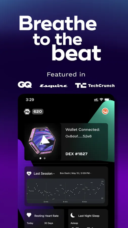 One way to quantify your wellbeing using biometrics is your heart rate: increased when excited or nervous, and decreased when relaxed or in deep focus. BRX fully integrates with Apple Watch and Apple Health, so you can monitor your heart rate activity while doing a session and examine your progress.