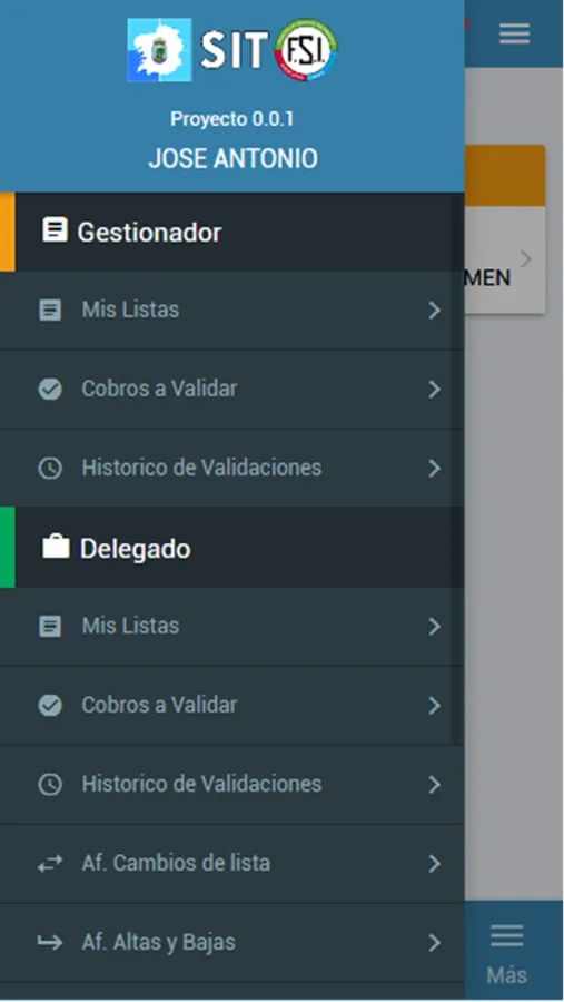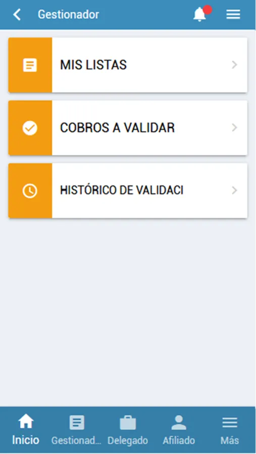 Para los Delegados y Gestionadores se ofrecen opciones adicionales.