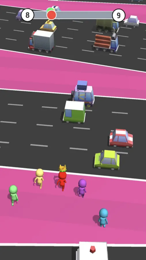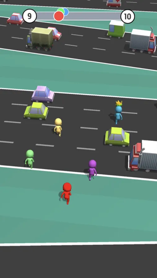 Run against others to avoid cars, overcome obstacles, and cross the road to the finish!