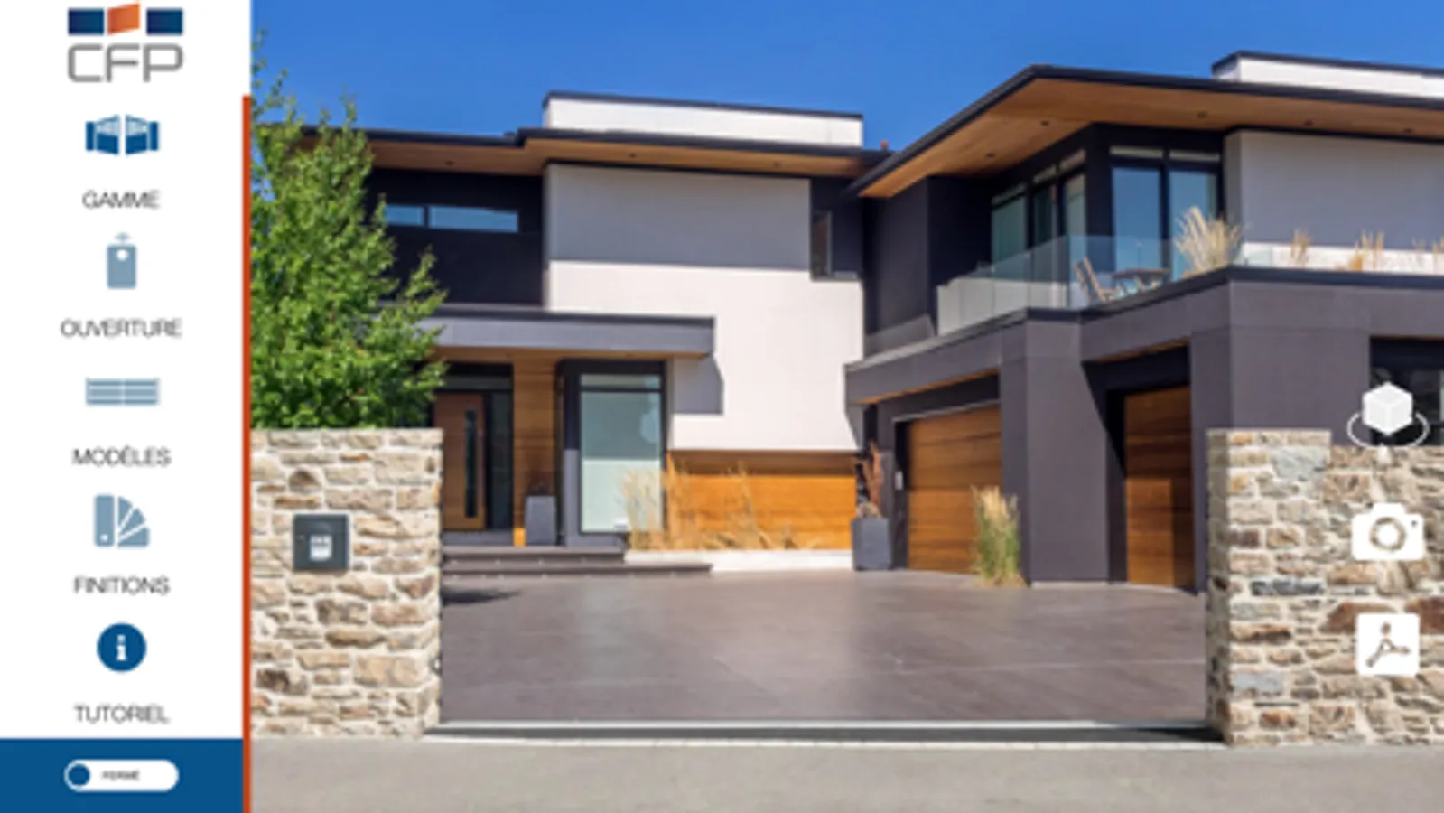 Le configurateur 3D de CFP vous immerge dans la réalité augmentée, en vous offrant la possibilité d’ouvrir et de fermer votre portail. Vous pourrez vous déplacer de l’extérieur vers l’intérieur, et ainsi donner vie à votre projet dans l’environnement existant.