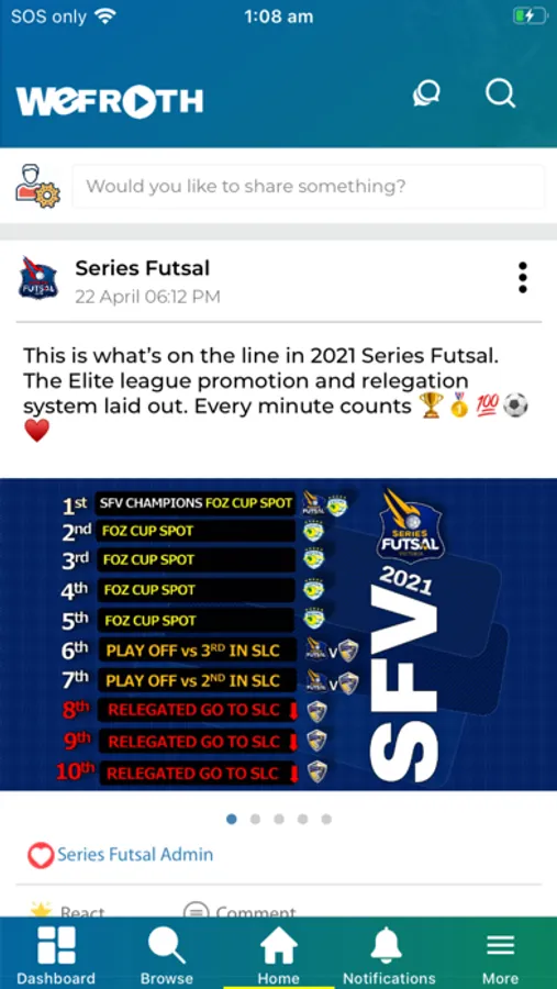 The WeFroth app is a fast, comprehensive and fun way to keep up to date with all things Futsal Oz.