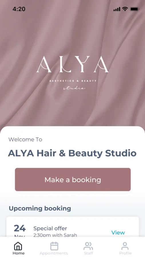 The ALYA Hair & Beauty Studio app makes booking your appointments and managing your loyalty points even easier. You're just a few taps away from feeling good and looking great!