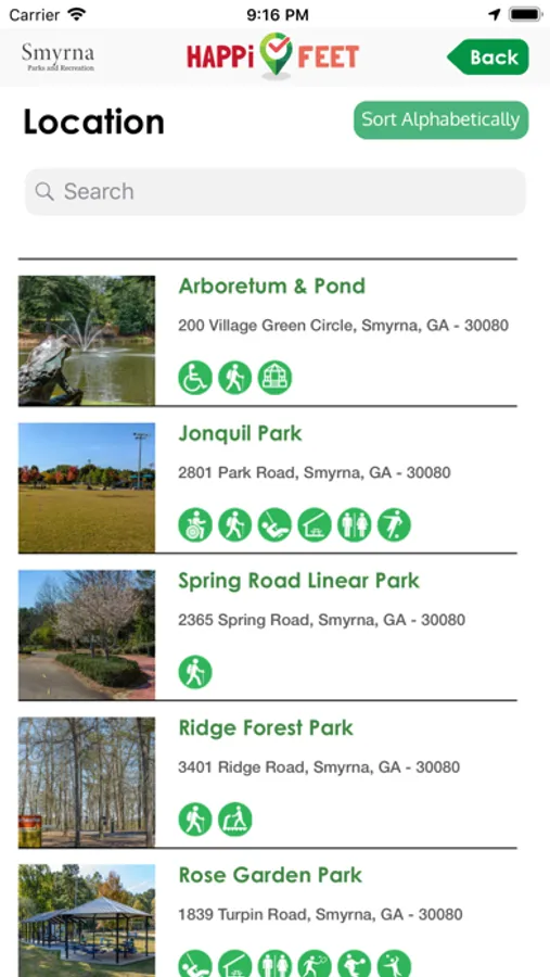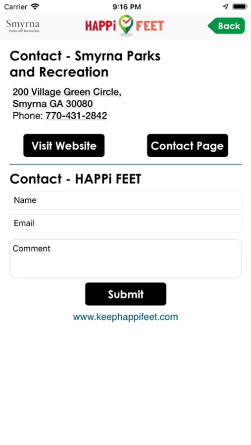 Tap screen to call or email parks and recreation from your mobile device