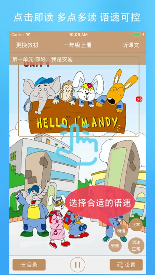 根据孩子的学习阶段可以将语速调整为:正常、稍慢、很慢。