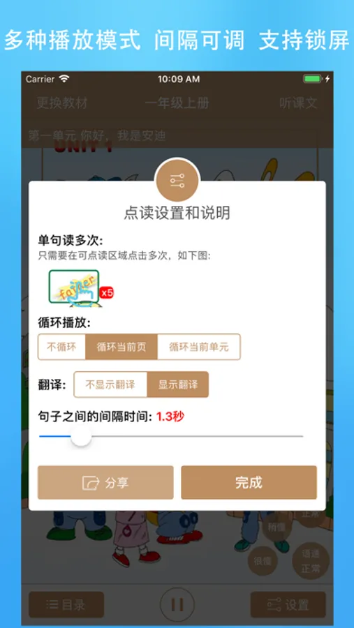 读一句、读一页、读一单元都可以,支持锁屏播放