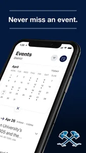 The event section shows a list of events throughout the district. Users can add an event to their calendar to share the event with friends and family with one tap.