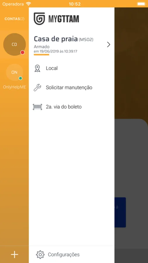 O MY GTTAM permite que você interaja com o seu painel de alarme diretamente no seu smartphone. Com ele o cliente monitorado pode acompanhar diretamente via celular ou tablet todas as atividades do seu sistema de segurança. Por meio do aplicativo é possível saber o status do painel de alarme, armá-lo e desarmá-lo, visualizar as câmeras ao vivo, verificar eventos e ordens de serviço abertas e realizar chamadas telefônicas para contatos cadastrados no seu perfil. É a segurança que você precisa na palma da sua mão.