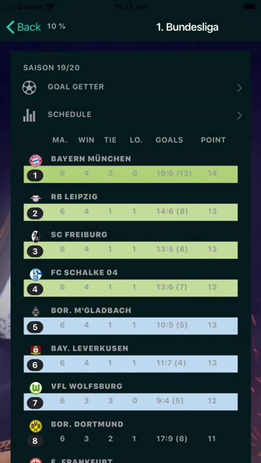 Everything the football heart desires. Schedules, tables, insider news, player and team profiles, transfer news and transfer rumors right at first sight. Not just for the football league, but for leagues worldwide and for past seasons.