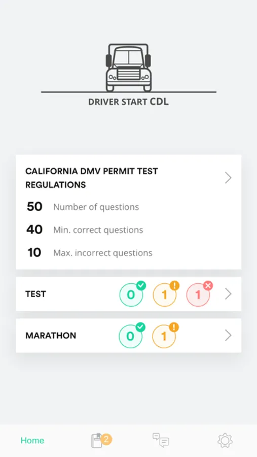Driver Start app provides two helpful methods for checking traffic rules knowledge and practicing Commercial CDL permit test questions.