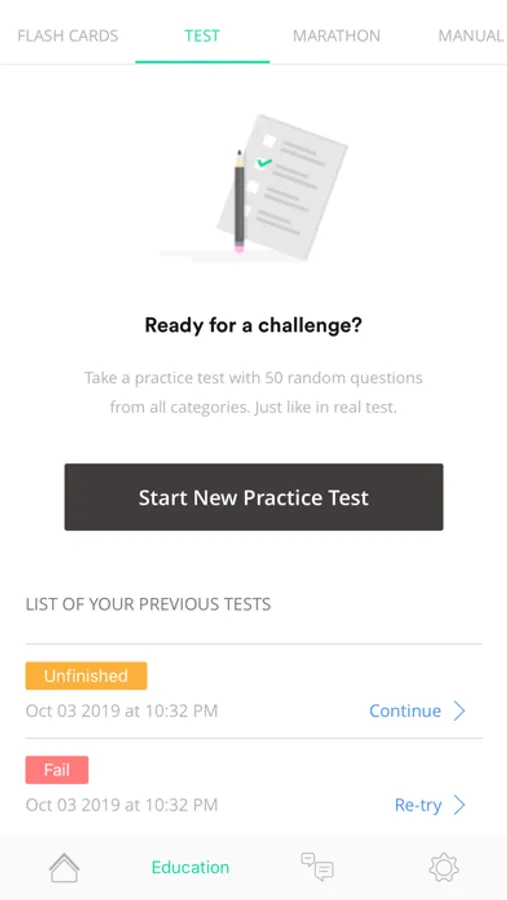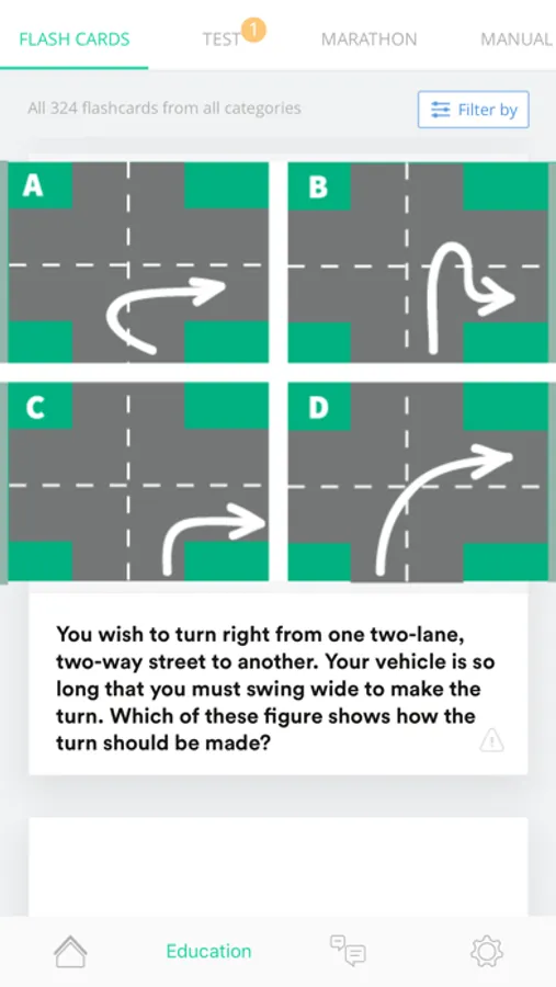 • Alternatively, you can undergo a Marathon Test that includes a list of all questions available for your state and covers all topics from the local manual. The number of questions may differ depending on the license class you are going to apply for. An experienced reviewer may suggest you start practicing with the Marathon Test to check your general knowledge while shifting to the above test afterward for the real-life experience.