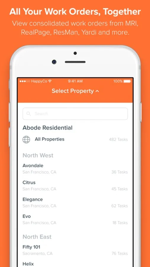 Tasks by HappyCo integrates with the key multifamily work order systems — Yardi, RealPage, MRI, ResMan, Entrata, Rent Manager, and more — letting you manage every aspect of your property's maintenance in a single place. Built exclusively for multifamily, Tasks works seamlessly with HappyCo’s Inspections and Call Complete apps, automatically generating tasks from inspection items as well as missed resident maintenance calls. From make ready to life safety, ongoing maintenance to curb appeal, Tasks helps you prioritize and manage action items for every member of your team.